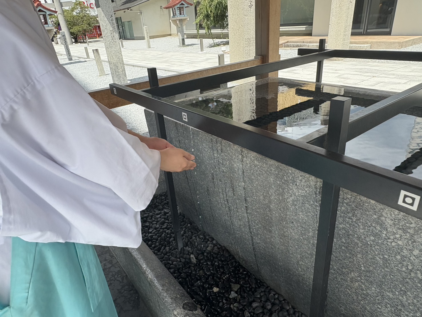 最初に両手を洗います。柄杓を使わないので、左右の手を交互に洗う必要はありません。