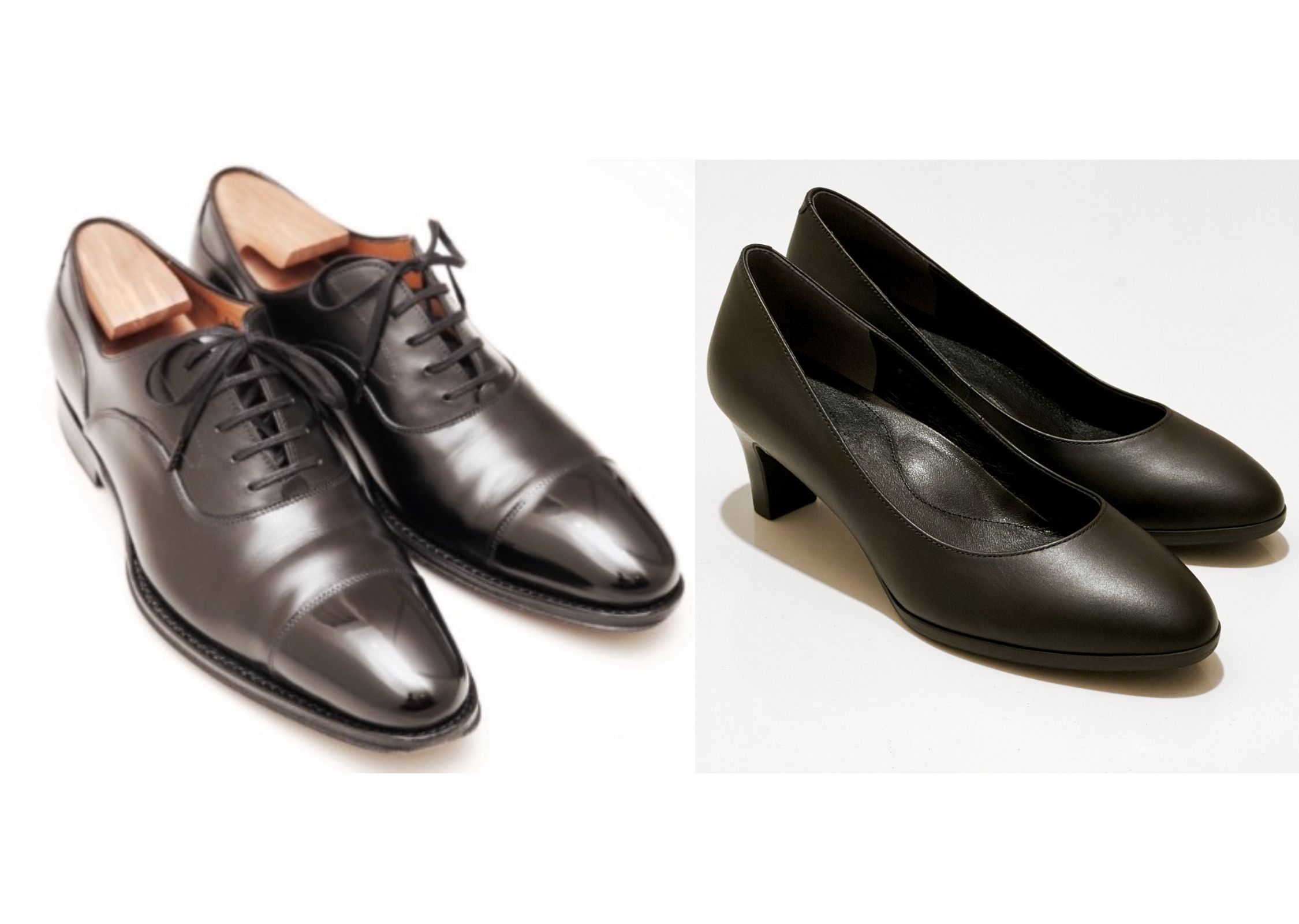 男性は革靴、女性はヒールの低いパンプスが適しています。