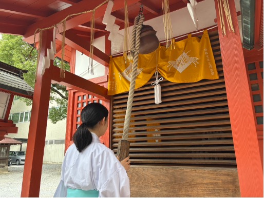 鈴の音には、場を清める力があるとされ、また参拝者が神前に立ったことを神様にお知らせする役割を持っています。